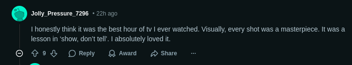 >>216574689Many are saying Pluribus is the most painfully paced show of all time.