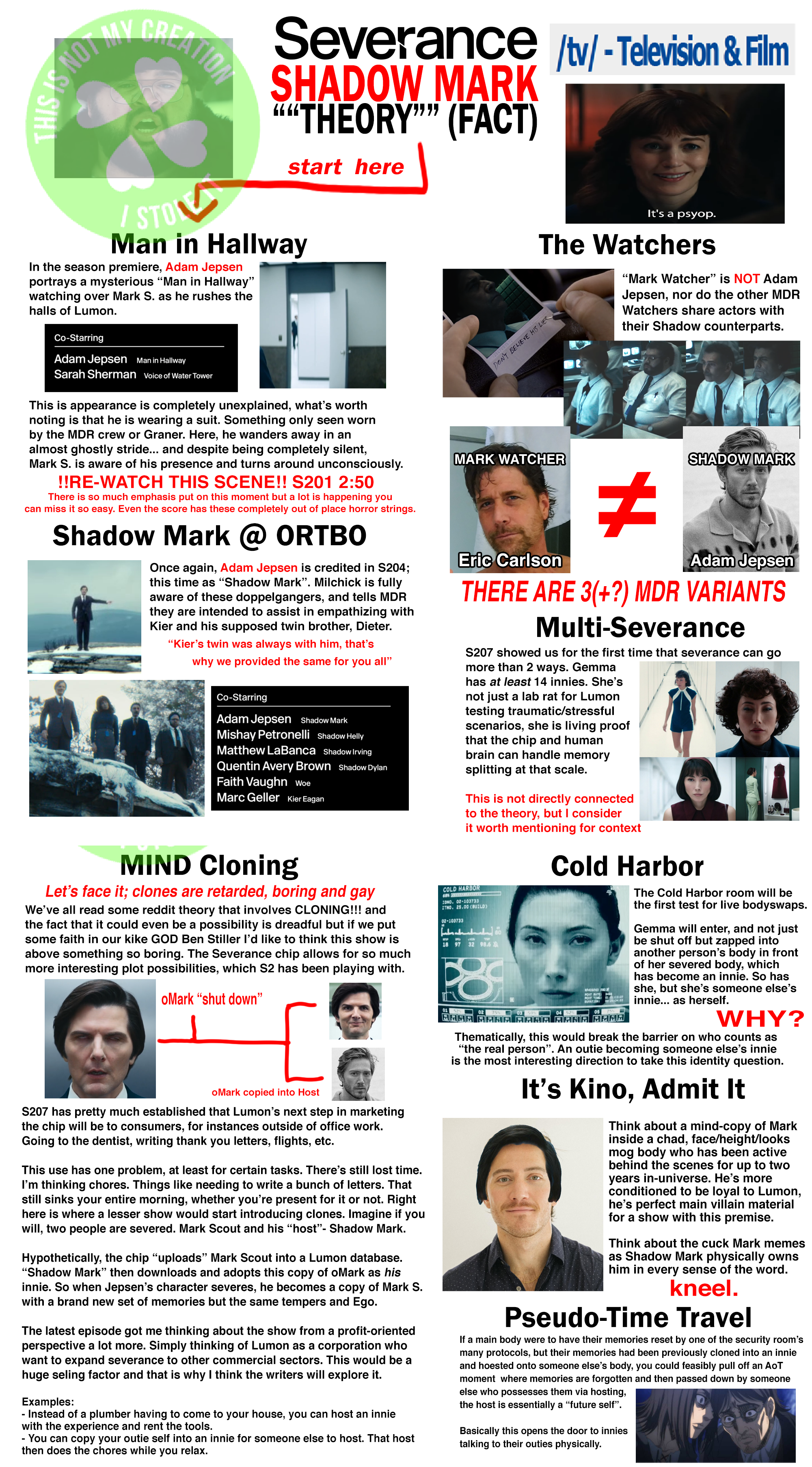 >>216576480I'm not working with anyone here anymore. I'm in a jaded, alcholic true detective arc right now.If you were in the thread a few weeks ago I was the one that proposed the virus was mutating the stored bodies Carol found. People started agreeing, posting screenshots that literally still looks like tentacles are coming out of people if you go back and look at the scene. I was so convinced, vinced even said that it wasn't what the obvious thing we were all thinking. I thought we had done it. We got one over on those reddit fucks also watching the show with a solid prediction. But no, it was the obvious thing we all thought immediately. It was a fucking joke. Who gives a fuck if they're eating people. 2 episodes later and no one cares