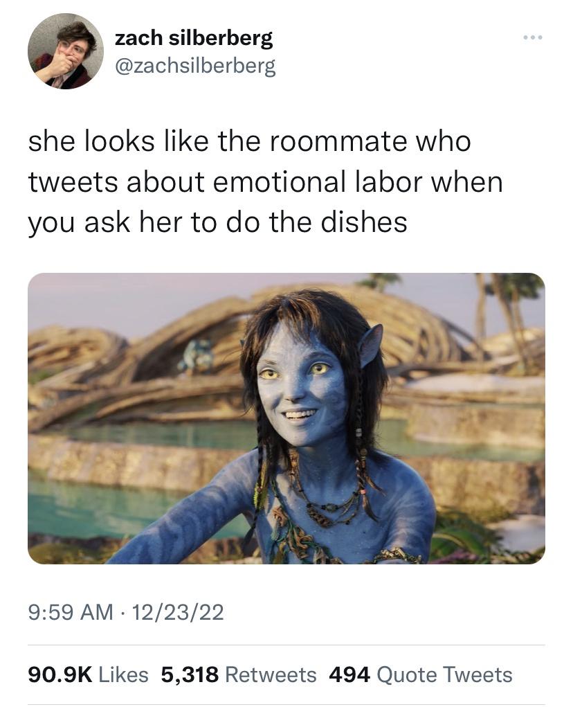 Just watched the movie - pretty good, Quaritch and Varang were the best part and I hope they have some kinda happy ending together. It's a pretty cold take, but I don't like Spider and his storyline, the whole character feels like the typical annoying kid character despite of him being too old for that and every time he is on screen you just want the movie to get back to the other more interesting characters. The whole fungi thing also throws up some weird questions about the world - Is world really organically interconnected or does the real original nature of the planet just suffer from a horrific fungi infection? Also did kinda a double take at the end where they meet with the dead and they are happily like