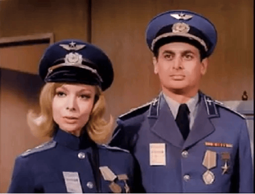 Here's your Soviet cosmonauts with the Hero of the Soviet Union stars. Getting the Hero of the Soviet Union for a space flight is historically accurate.>Arlene Martel as Russian army cosmonaut Sonya Tiomkin (left) with fellow cosmonaut Major Posnovsky (Richard Tilden)>>216797642Aye.