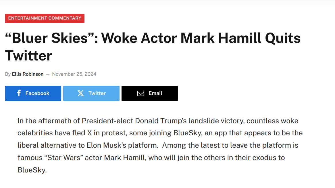 He's unrecognizable in real life from his early Star Wars days and looks like a disheveled hobo.People who watched the newer movies didn't really give a shit about them, they just consoomed the newest thing and then moved onto the next new thing, so they don't give a fuck. There's no real fanbase around them.His career has been about voicing characters, so he's not in front of the camera regularly and the most visibility he has had in the last 10 years, has been in youtube clips of people shitting on the new Star Wars content lamenting how they killed Luke as a character.And his terminal TDS doesn't do him any favors. I can only imagine how many fans got alienated by his liberal politics.On top of all of that, the age of movie stars in general is over, no one gives a shit about these guys.>>216801979Because back in the day when these actors were considered gods, they were used as arbiters of truth to the masses.That role has stuck with them and they feel the need to constantly chime in on anything political, because they and their employers think people still care about their opinions.