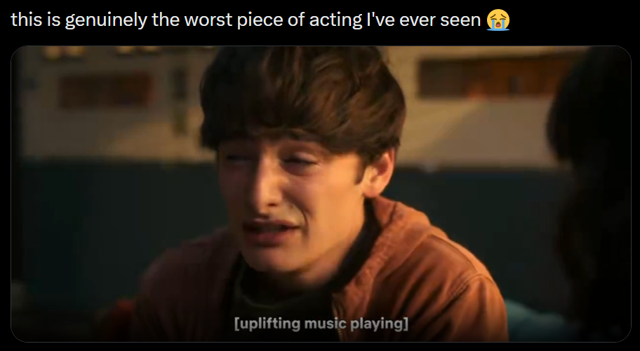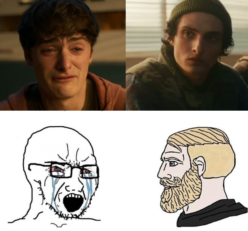 >>216882248They're complaining about schnapp because he's pretty much the only one given anything to do that requires emotional acting. Finn and Millie are just getting by with blank faced stares for 95% of their scenes