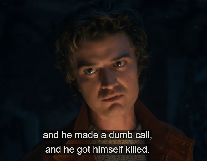 I can't help but feel they nerfed Steve after season 2 because he was overshadowing too much the rest of the cast. Now he gets one semi-cool moment per season at most. Season 2 Steve would have been aura farming non stop.