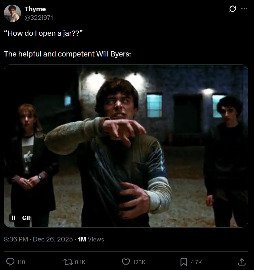 >>216929435>>216929500>Eleven and Will about to sacrifice themselves to destroy the mindflayer thats been revealed to be the puppet master controlling everything this entire time>Vecna: i now see the error of my ways. I am no longer an incel. I am all the stranger things.>epic Marvel tier CGI fight sceneK I N O