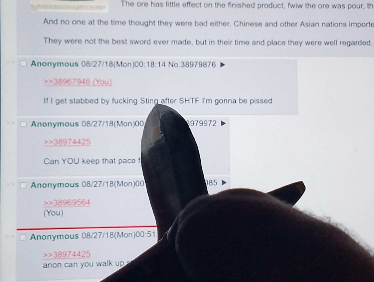 >>216943981Replica Orcrist is heavy and shouldn't be for an elfish swordIt should be a hollow blade somehowAlso the reviews say the pommel is where the excess weight is and the sharpened end of the pommel will eat a hole in your hand