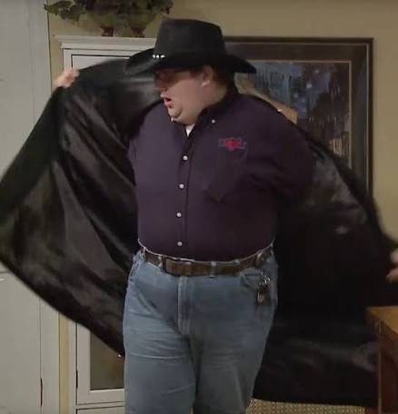 What was he thinking with those clothes. Are fats delusional enough to think that that style looks in any way decent