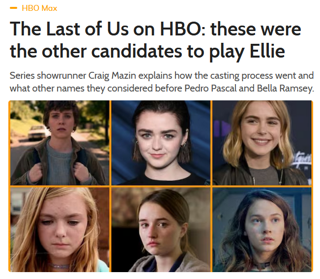 >>216957069Had they cast any of these actresses, I would have made it past episode 2But Bella Ramsey is so fucking disgusting to look at and Pedro is such a meme actor, this series had no chance