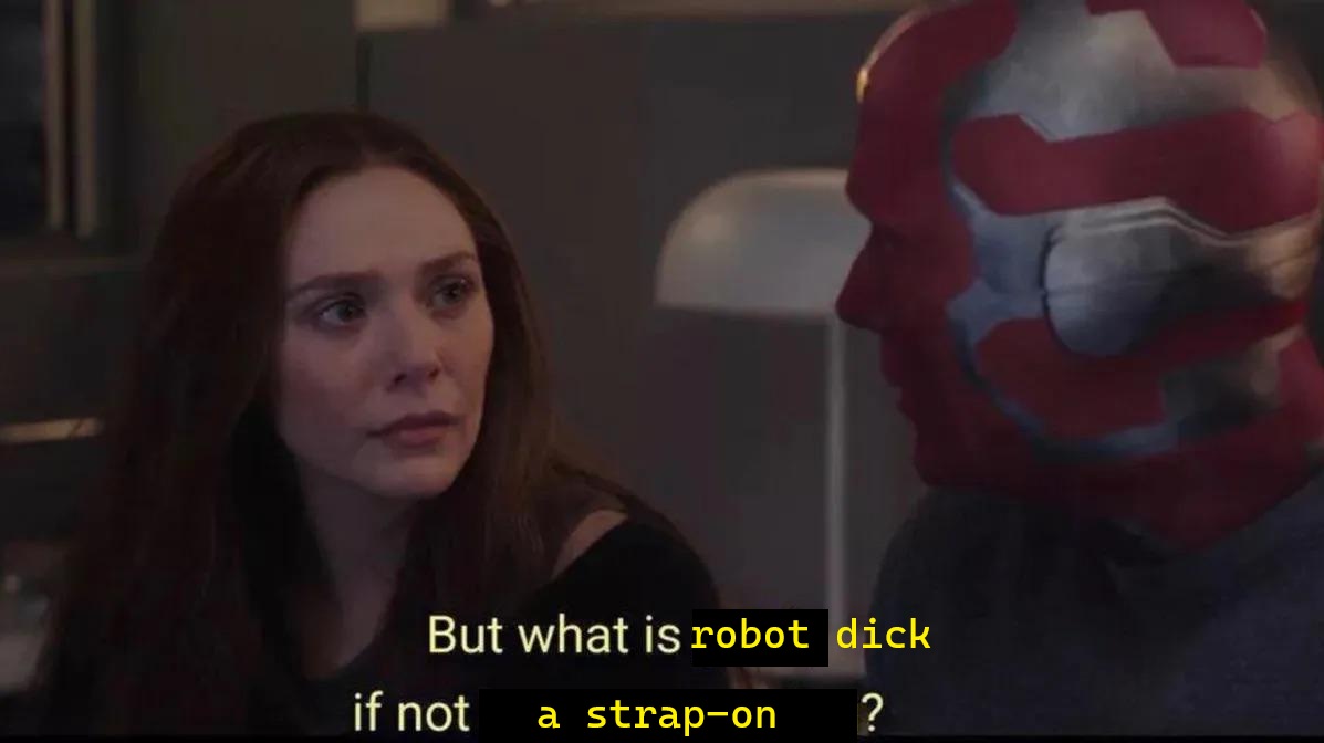 >>216962136On the showWhen she's going to bang a dude she asks him if he wants her to deploy her optional attachment (he says no lol)