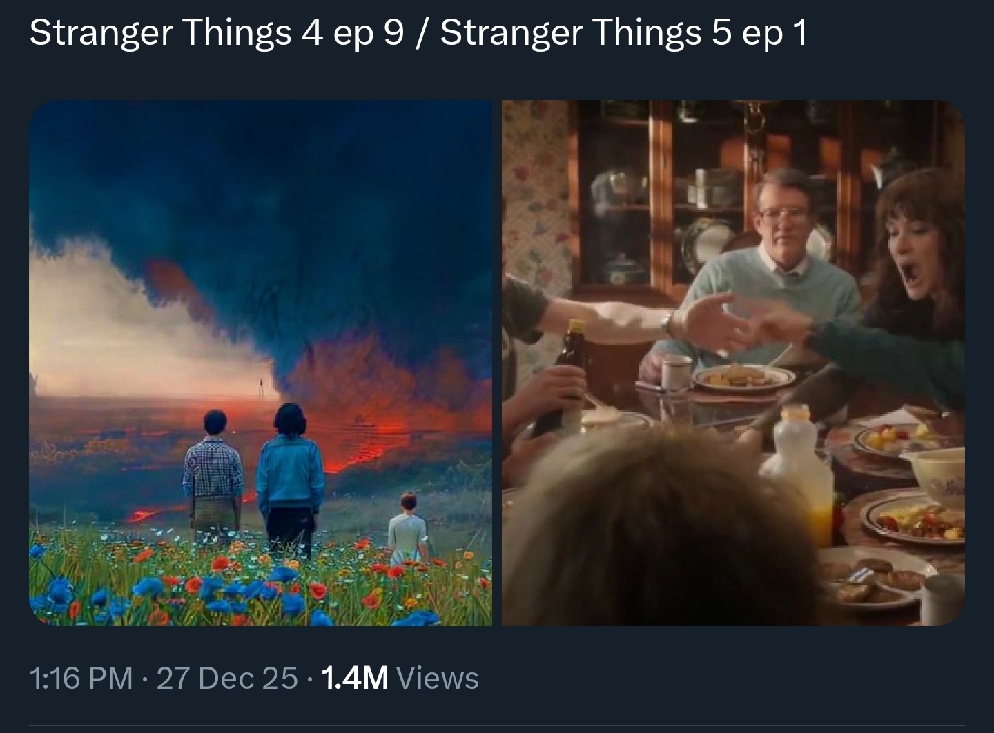 >>216954061>This is it!!! Theres no going back from the total destruction of Hawkins!!!! Everything has lead to this point! The final battle begins now! Leettttss fucking gooooooooooo!>Episode 1 of season 5 starts with everything literally returning back to normal and they just cover everything up with metal plates Aaahhhhhhhhhhhhhhhh