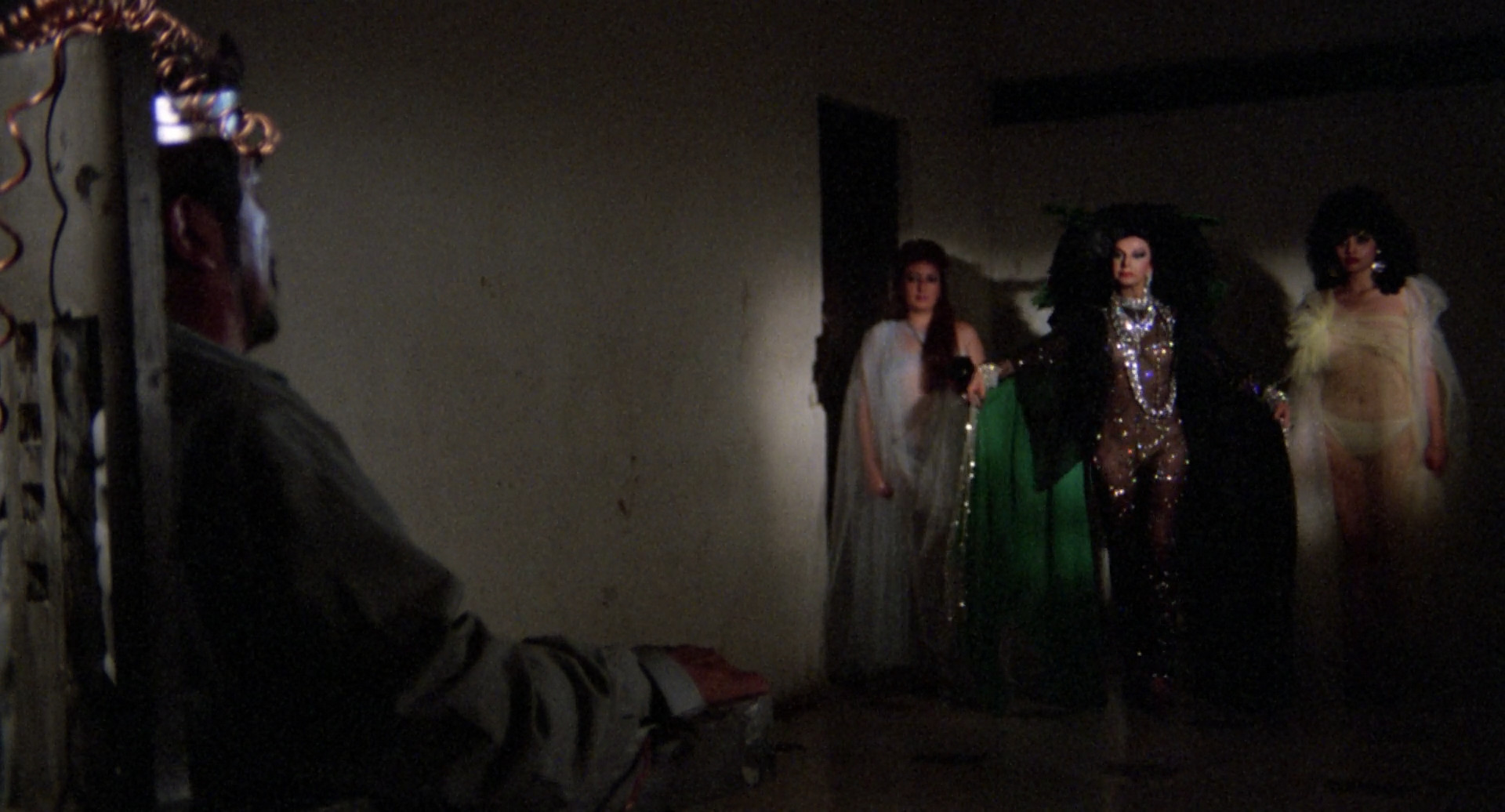 Just finished. Harry Reems and his new bride get a flat tire, knock on an old house's door for help, and an old lady gives them doped tea from a cauldron. Then Harry fucks a whole bunch of broads while an Anton LaVey type puts his wife in a wedding dress and crazy experimental music plays. Kind of a waste of time.