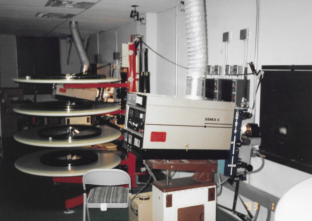 >>2169554171. yeah definitely, if they get this wrong the whole movie shifts up by a sprocket hole and they'll have to manually adjust it every time or re-cut and splice it correctly later which sucks to do2. this should be a simple adjustment, easy3. no one is going to measure or change the light levels for one specific film unless they get complaints, but the letter would at least give them a heads up4-9. at first I thought this was for theaters with smaller platters that couldn't handle 3 hours of film, so in that case it was necessary to use that black intermission to swap to the second assembled platter into the projector so the second half of the film could be shown. picrel is a 4 platter setup, the ones I ran only had 3 but same concept. movies are spliced from smaller transportable reels into one platter usually, that's pulled from the center and runs through the projector then re-spools on a platter above or below it. o na long movie the first half would play from say center to top platter, then the 2nd half from bottom to center. but then I realized it says the intermission starts in reel 6, then the black frames, then part 2 starts also in reel 6, so I don't know if they expected the projectionist to split that reel or if it was just a convoluted warning about the long swaths of black frames being there intentionally. I would have ignored it.10. in 1975 maybe, unless the theater has it's own pre and post movie audio to play.