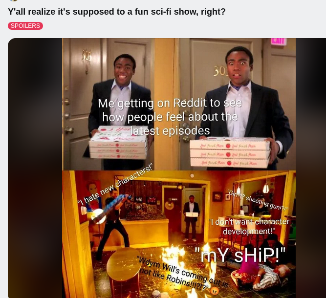 >>216957939Are you a fat retard. Even reddit finds this season bad and zoomers on tiktok too. They're all clowning on nothing happening and how pointless the gay will thing is.