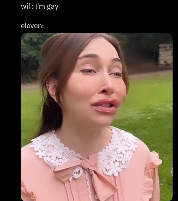 I'll say it again:The only way this shitty season could be redeemed is if before Eleven's about to deliver the final blow, Vecna goes 'You can't do this, Jane! Because..." and they all break into a song and dance, including all the characters that died on previous seasons, one demo doing an elaborate breakdancing routine, the MF taking the shape of a guy doing some tapdancing, and Henry belting some serious operatic vocals. Maybe Mike dancing with Will to humor the seething fags. I'm not joking, this would cement it as the more KINO finale of all time. Obviously it'd only work if all the cast stands 100% behind it instead of shitting on it like the GoT cast did for season 8.
