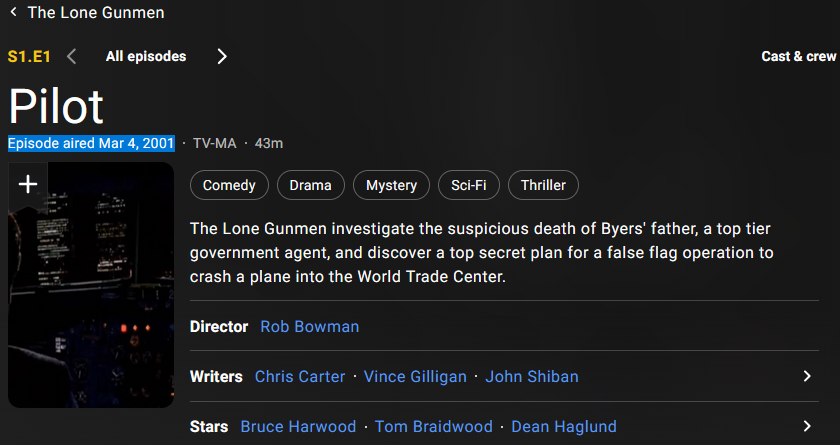 Can we get a Lone Gunmen continuation, or is it still too spicy?
