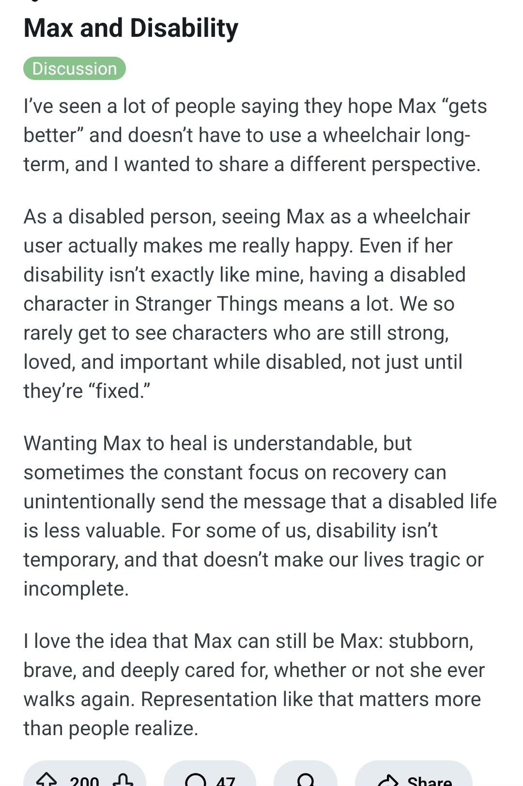 >seeing Max as a wheelchair user actually makes me really happy.Wtf is wrong with disabled people?