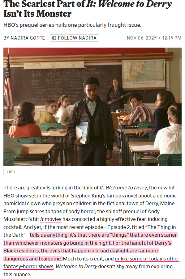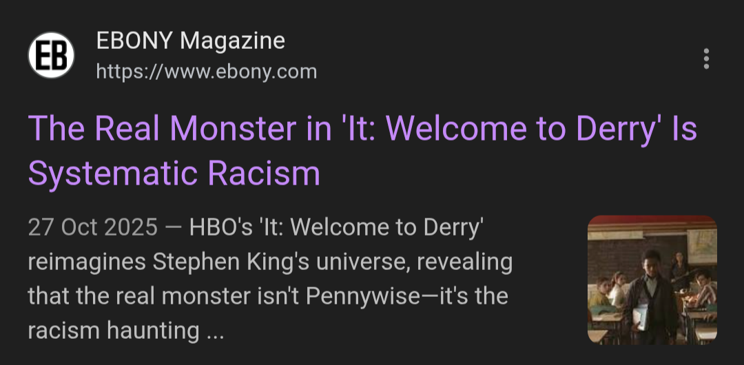 I want to see this, but I'm worried that it's just "Racism was the REAL child eating eldritch abomonation all along"is that accurate?