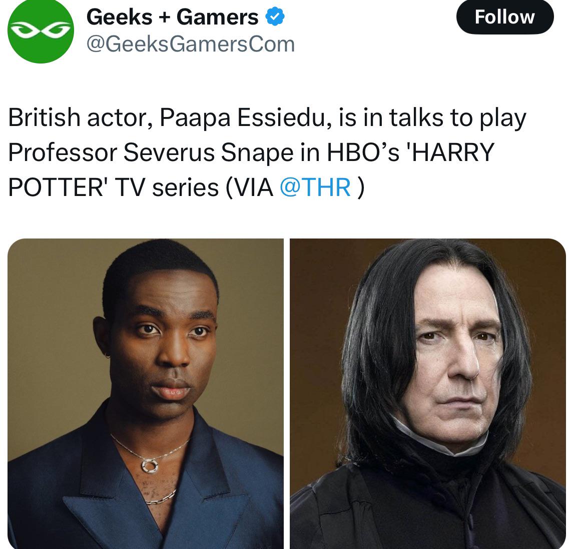 >>216976297>Character is canonically a self-hating mixed-race man who was cucked by a "pureblood" >Show casts him as black