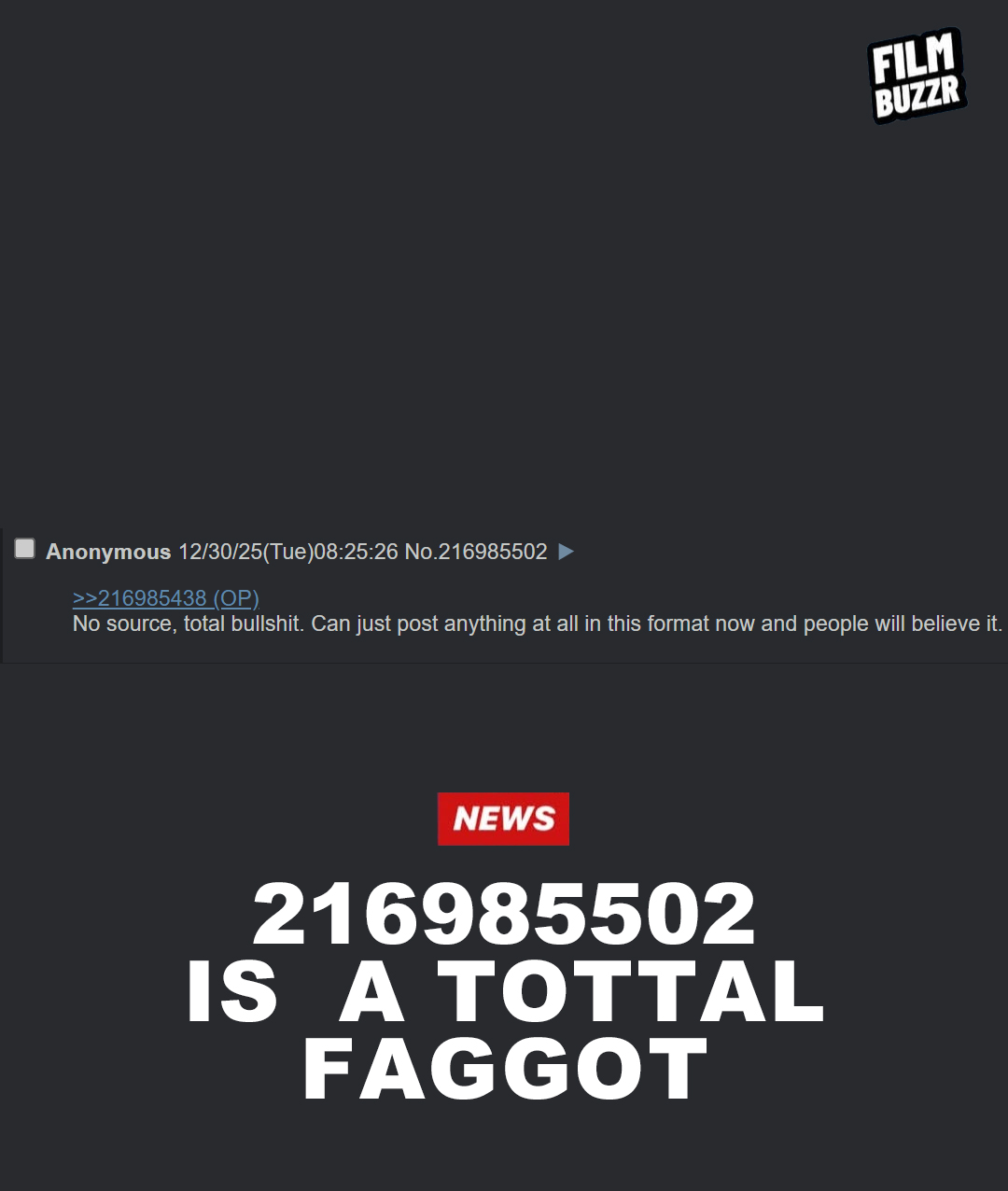 >>216985438No source, total bullshit. Can just post anything at all in this format now and people will believe it.