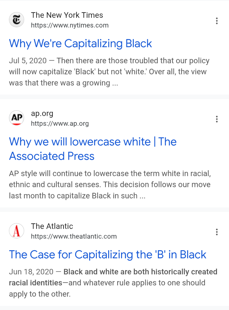 >>216991558There was a huge push for this in 2020 after the Floyd riots, before then nobody capitalized either.It's the reason I still do the reverse to this day. I capitalize White and lowercase black just as a middle finger to these fuckheads.