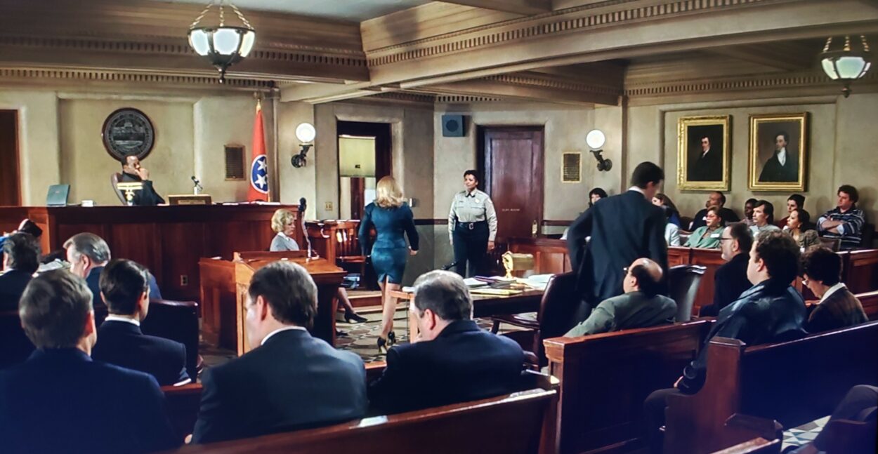 The dude jumping over the railing and plapping the judge