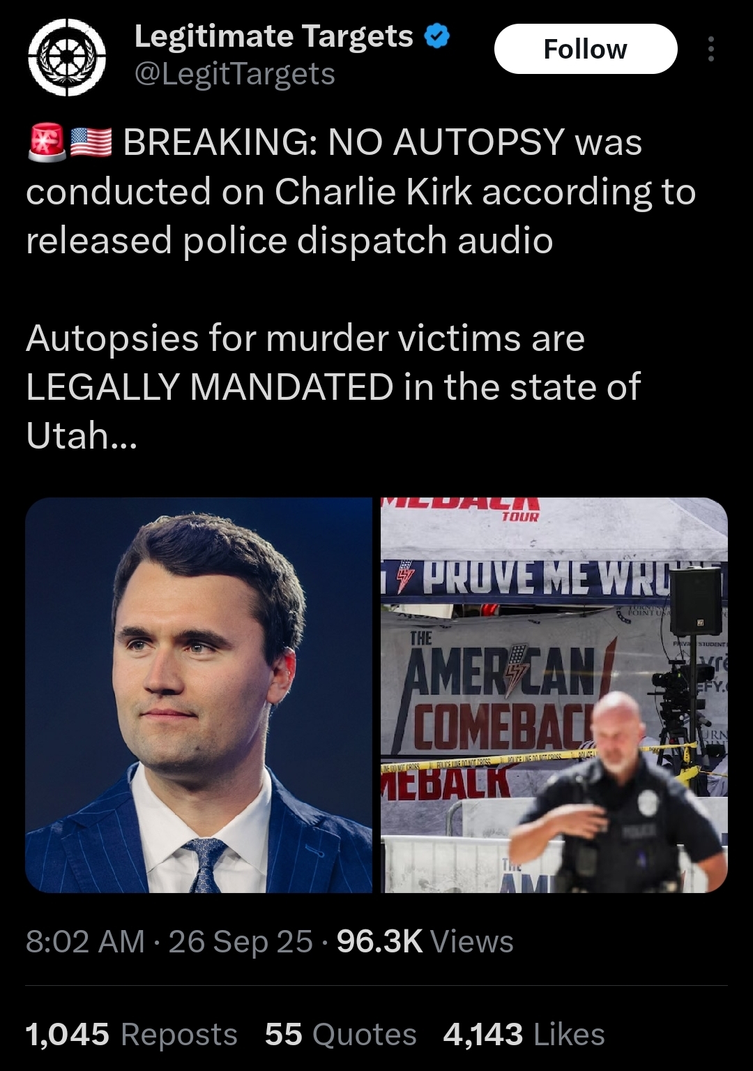 >>217012435This is the way. It's never a drag queen... yet it's always a guy from TPUSA. Remember, Charlie Kirk was murdered because he resisted TPUSA's deeper ties to Israel which included expansion to highschools. Erika Kirk is fine with child sex trafficking given her history with Romania.