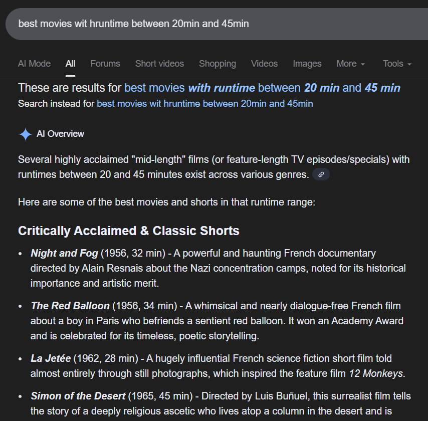 why must films be either <10 or >60 minutes long and why can't I just watch a movie that is about 20-45 minutes long?