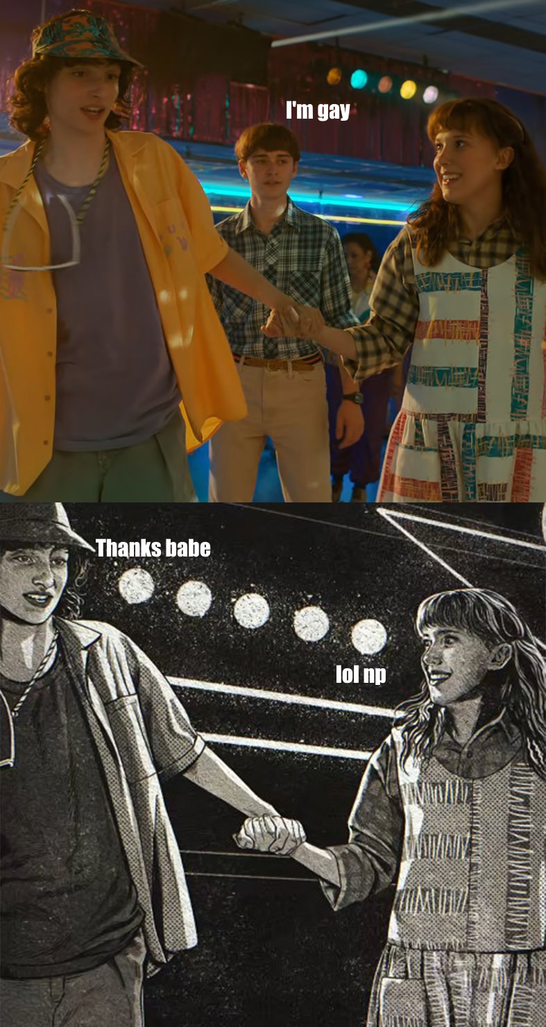 >>217031028Will's happy ending is going to gay bars in NYC at the height of the AIDS epidemic.What were the Duffer's thinking?