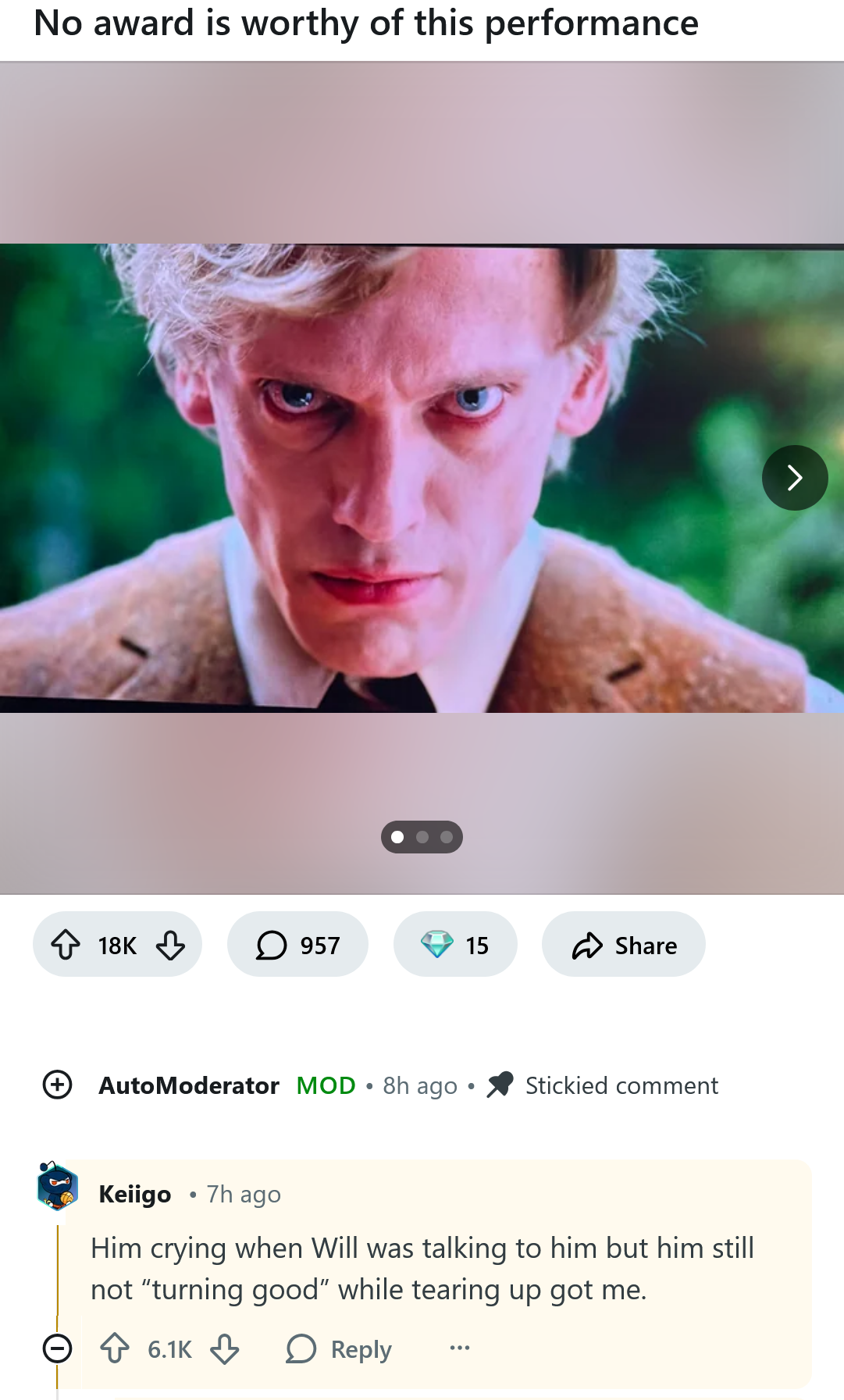 his performance was just the same obnoxious sarcasm every scene. I liked him in earlier seasons too but he also ran out of rail