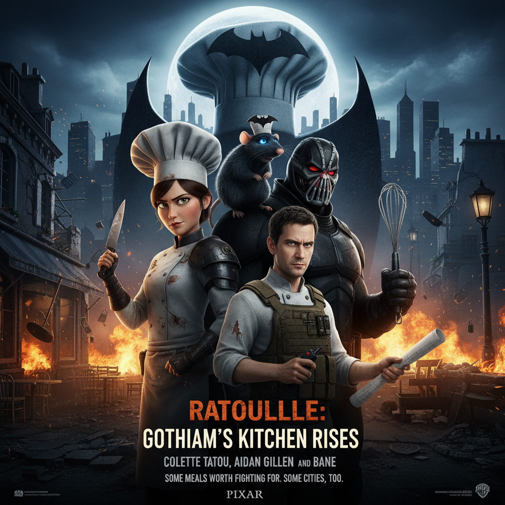 Chef Pavel, I'm Judge See Eye AyeHe wasn't aloneYou don't get to bring uncooked materialsNo worry, they are not marinated yetAnd why would I want them?They were going to be sent to the kitchen to be cooked by the Rat ManALFREDO? Get em in the kitchen I'll call it inThe recipe my grandmother taught me lists squash, zuccini, bell peppers and tomatoes but no eggplant. First one to discover a use for this ingredient gets to stay in my kitchen. *throws random contestant out* He didn't cook so good who wants to go next?Or perhaps he's wondering why somebody would cook Ratatouille without eggplantAt least you can talk, who are you?It matters not who we are, what matters is our culinary skills*See Eye Aye removes the chef hat, revealing a rat*If I take the rat off would your cooking skill dies?It would be extremely tastyYou are a confident guyFor you *shoves eggplant up See Eye Aye's ass*