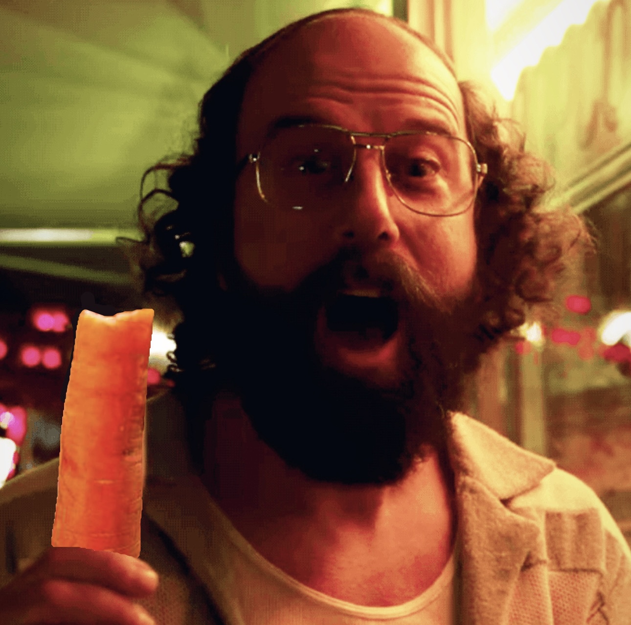 >*holds up carrot and cucumber*>Okay, most of you guys like to eat carrots, right? Only I don’t eat them, I like to put them up my butt. >and this.. this cucumber I like to suck on it.>*puts it in mouth*>And then I take the carrot and put it in my butt while the cucumber is in my mouth.>But if we’re in the Upside Down, then I’ll switch and put the cucumber in my butt and put the carrot in my mouth. >why? So we can beat Vecna.