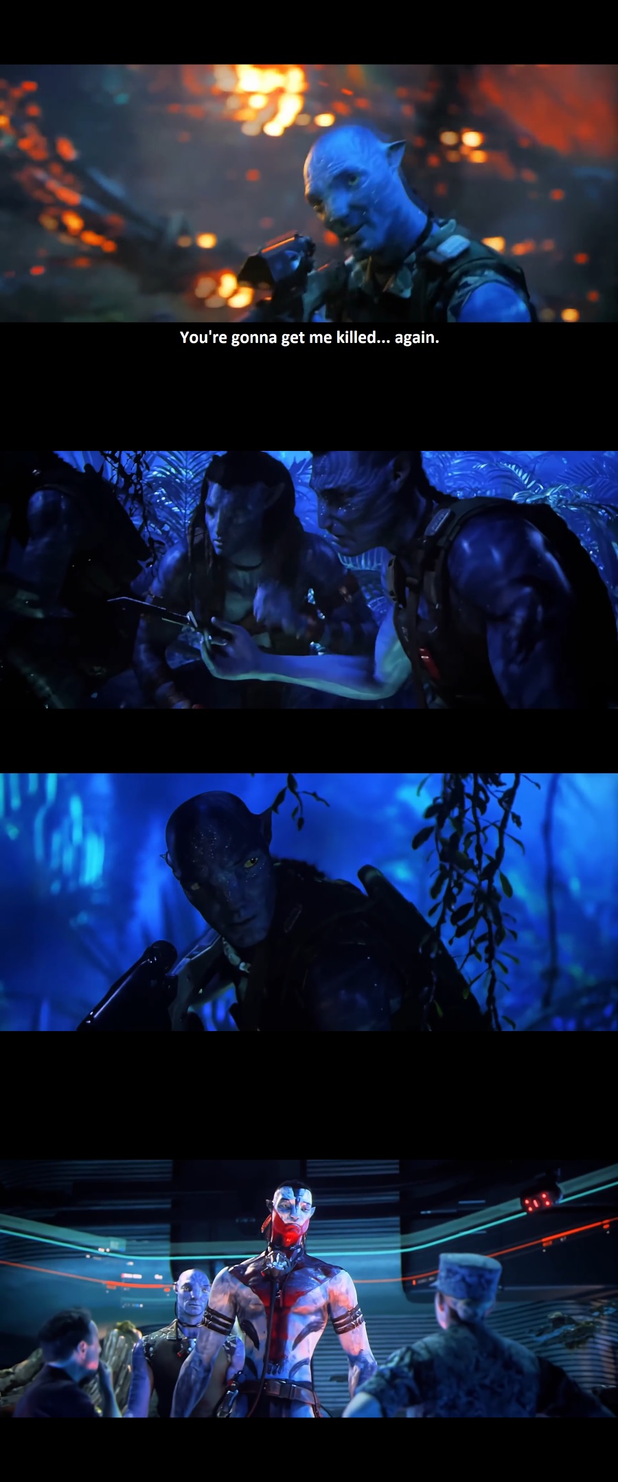I’m really disappointed with how stupid the RDA is portrayed as in the last 2 movies. First in TWOW it was the recom squad, all this hype about how Jake sully is doomed with them on the hunt and literally half of them die in the first battle against just Jake and Neytiri (and neteyam), with the rest getting curb stomped on the ship. In the first movie the RDA were shown as a less professional force, no standard uniforms among troops, just mercs sort of doing whatever, but in the final battle in Avatar 1 they are way more competent and after the initial shock quickly devastate Jake’s forces on both land and air, only being beaten because eywa showed up. In the second they are way more uniformed and professional looking, but less competent and so much more inefficient.In the way of water except for the opening train scene and neteyam death not ONE Navi is killed as a result of RDA action. Zero, not even in the final battle in TWOW does a single metkayina die. It’s absurd and takes away all stakes because you know the heros will effortlessly save the day while the stupid humans will be stupid and do nothing at all. The final battle in FAA was laughable at first, again just a one sided massacre against the RDA until the mangkwan showed up. At least the Cet-ops were somewhat competent and managed to kill a few Tulkun and Navi. Sec-ops on the other hand were fucking ridiculous, losing 3 fucking dragons and all other air assets with NO kills against Navi. SEND A FUCKING SCOUT YOU DUMB RETARD RDA, SEND 1 GUY TO FLY AROUND AND SAY “Coast clear!” Before bumbling your entire fleet into a trap. Ardmore has no personality like Quaritch and her forced conflict with the mangkwan was so stupid, you got the air breather and Jake and new allies, everything you could ever want but nooooooooo we need to show how evil and heckin racist the RDA is. I rolled my eyes when she called them savages because I saw it coming a million miles away.