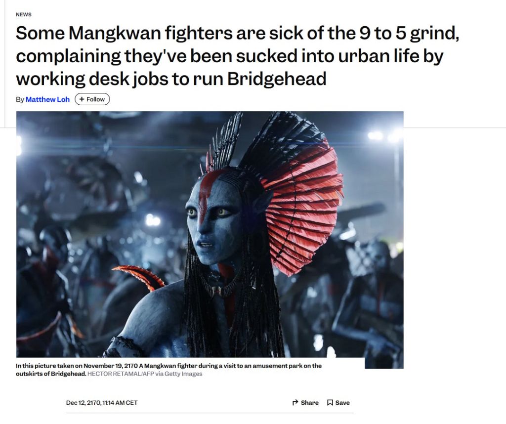 >>217047544>I’m really disappointed with how stupid the RDA is portrayed as in the last 2 moviesEver held a corporate job before? If not, you'd be surprised how fucking retarded most of the suits are, literal NPCs with big titles next to their names.
