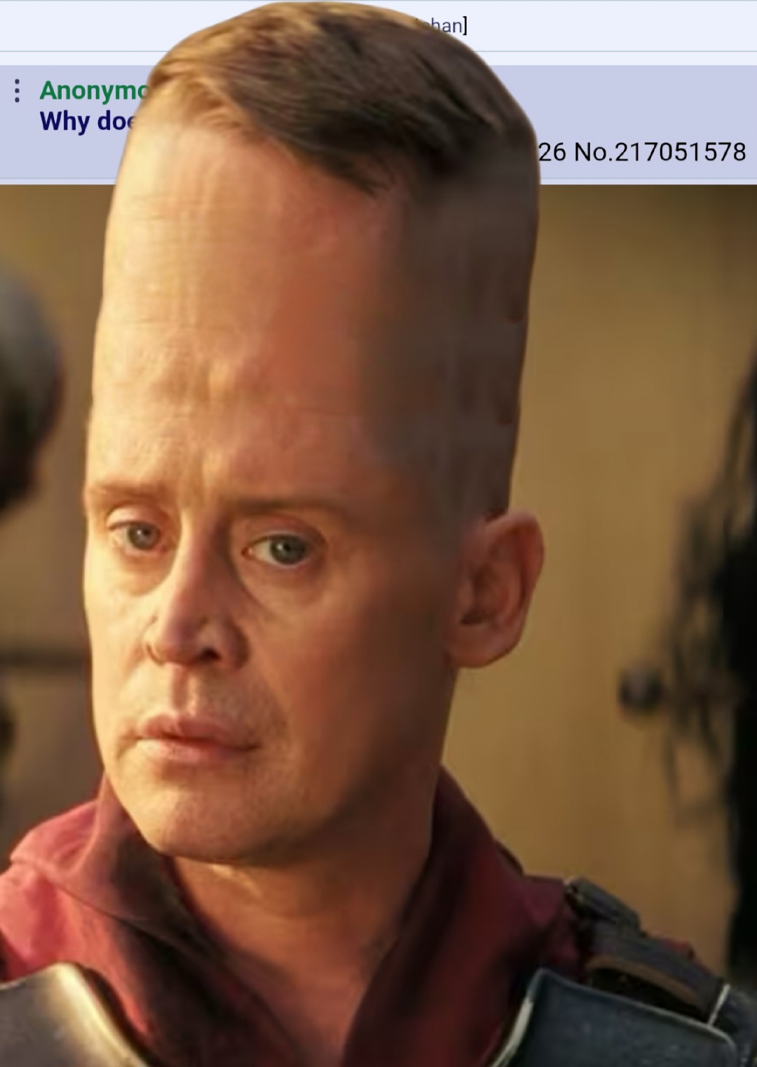 >>217053319>>The camera pauses for a long moment>>>Clearly this is meant to be someone you recogniseI thought it was because he had a goofy ass face under that ornate mask instead of being some kinda badass.