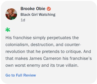 Just saw it. All the chud "critics" lied about their gripes>it's more for kids>they say bro too much and it's annoying>Quaritch has zero growth>Everything with Spider is terrible>The last 30 minutes is exactly the same as TWoWDid they watch the same movie or are they openly lying to continue the reactionary grift?
