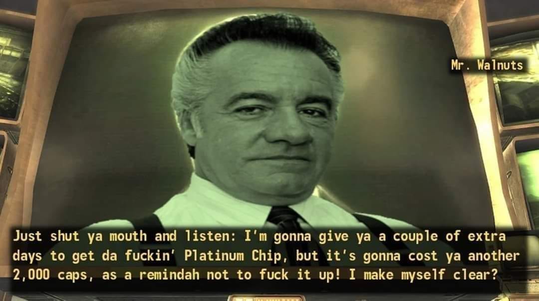 >>217060795It only exists because FNV makes cuck howard seethe endlessly so this is his way of dragging it through the mud in the eyes of the normies.