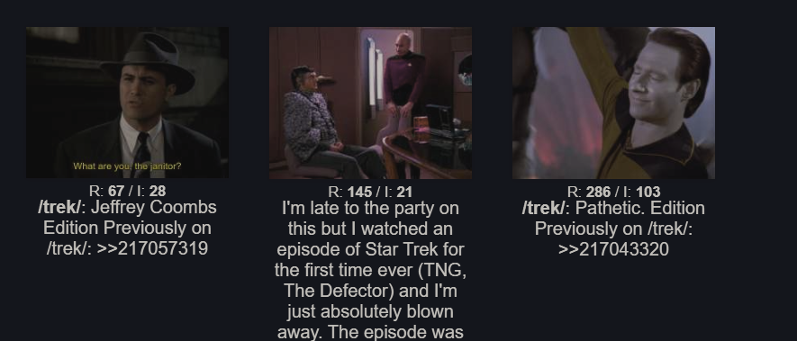 >>217069314Careful, now, careful! You don't want to upset anyone.We must be very careful in /trek/ now. Very careful, Ned.