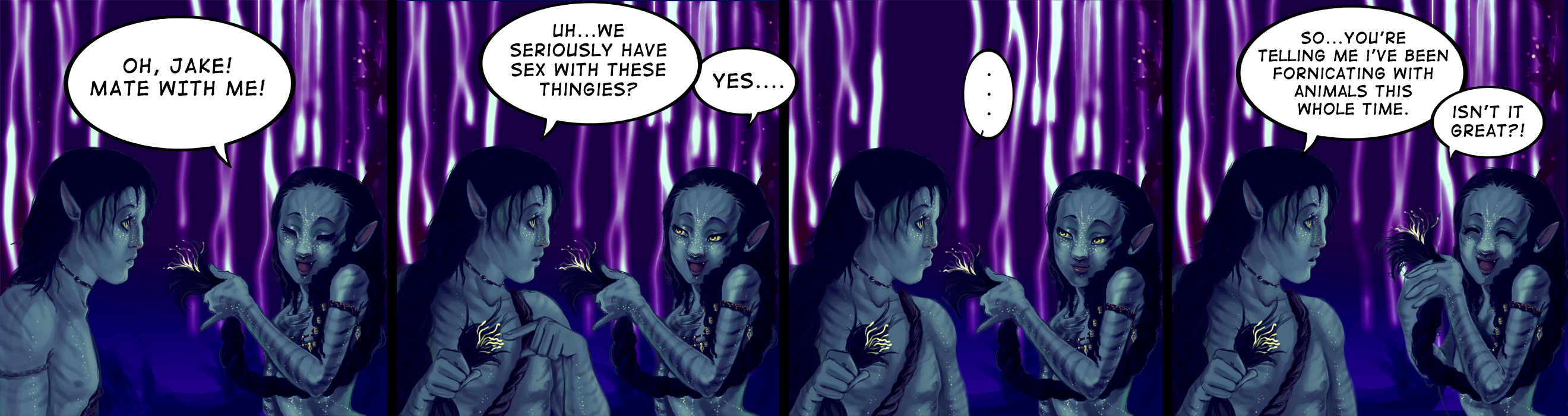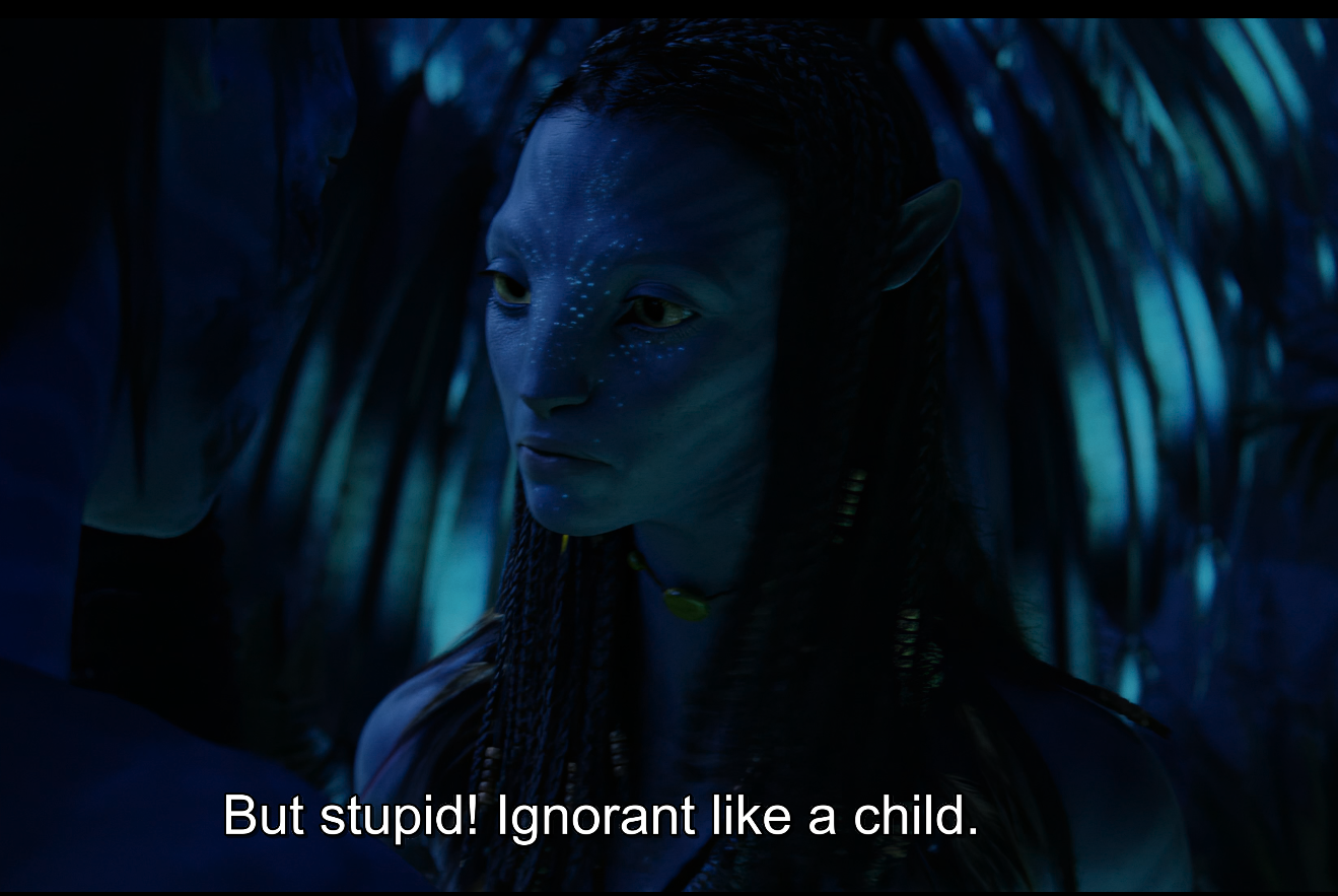 Avatar 1>escape your responsibilities and fuck around in the woodsAvatar 3>go home and be a family na'vi