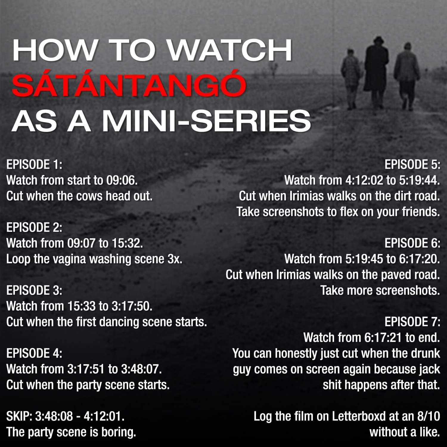 i once was talking to a woman at social even and told her i watched an 8 hour film by mr tarr.