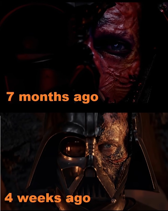 >>217228118there is no reference images for old vader's face other than a 30 second scene in rotj, and that shot is in only one angle, these are from multiple angles