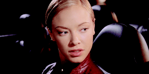 Promo still of the deleted side-plot of the T-X's mission to harrass/interrogate the girl who told T-1000 that John and Sam Drummond were at the Galleria.