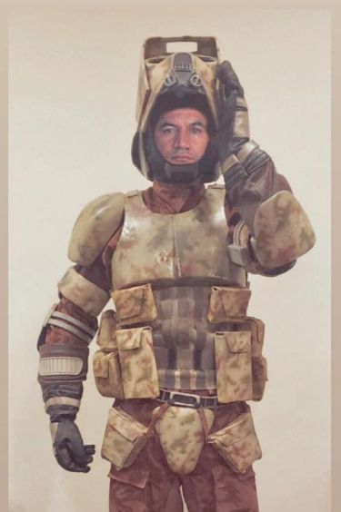>>217250204one of the coolest troopers, because of the detached rubber strip and the orange pauldroon. Lucas was demonstrating the wear and tear. those strips on the helmets are there so theres something on the top half of the helmet to grip onto, function-wise. stylistically, it's eyebrows for the face. its a beautiful marriage of function and style. 'kashyyk troopers' are cool too