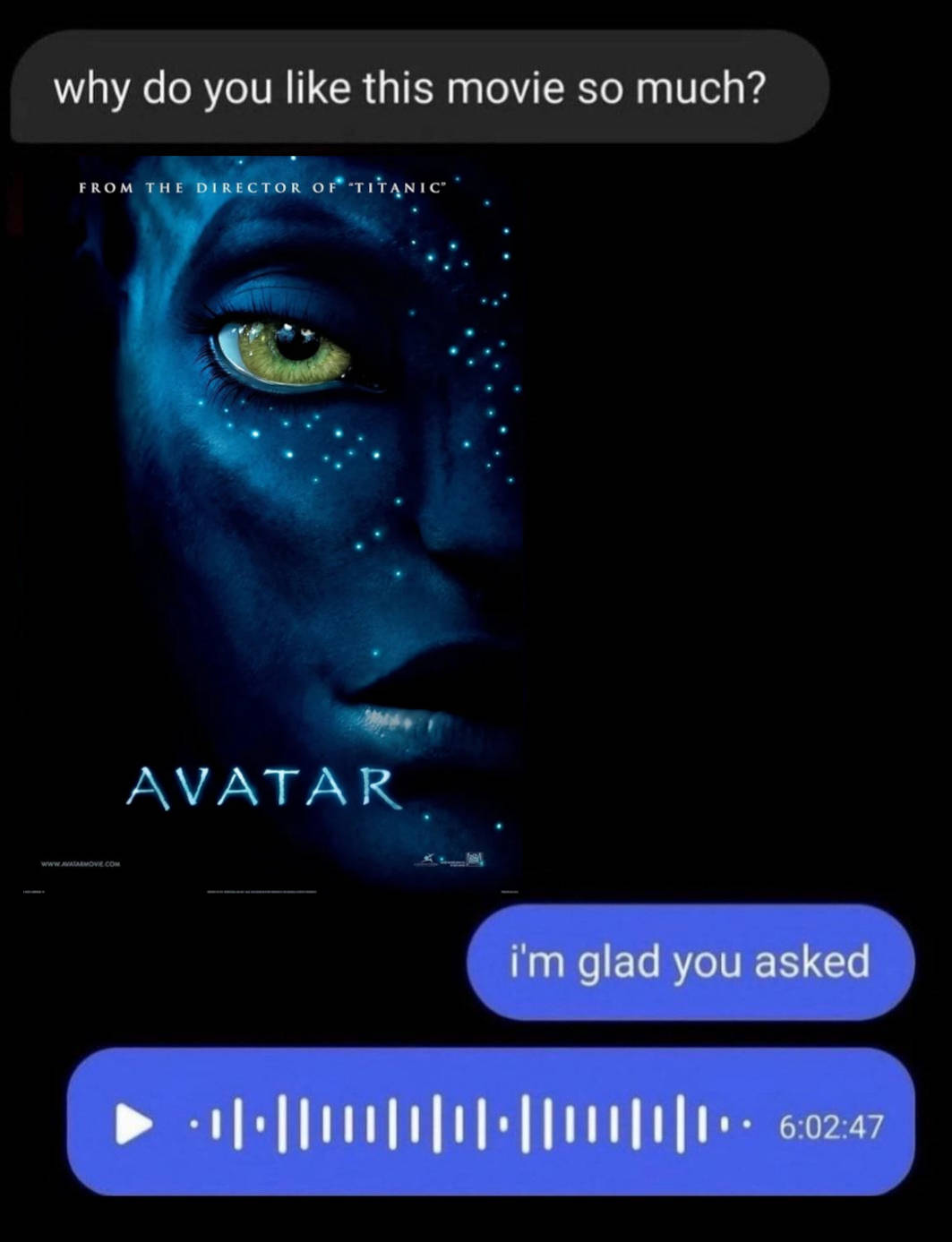 I love how many redditors are now into avatar after parroting the “dances with wolves in space” meme years ago