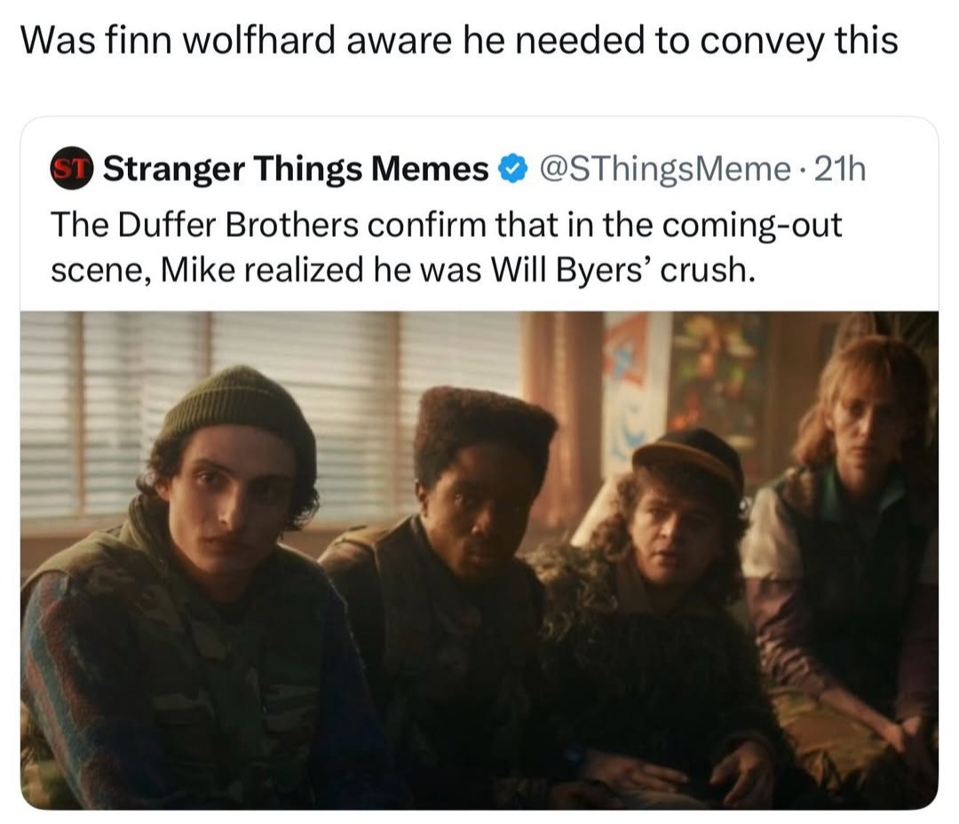 What are some alt endings that would've been better? Some I came up with...>time travel: Will pulls a Donnie Darko and kills himself in the past to prevent all of this from happening>twist villain: Will takes the mantle of Vecna after he is defeated and becomes the new final boss>traitor: 8 was working with Vecna and Mindflayer the whole time>heterosexual marriages that perpetuate the white race: Mike/Eleven, Steve/Robin, Nancy/Billy, Jonathan/Vickie all get married and have lots of white babies