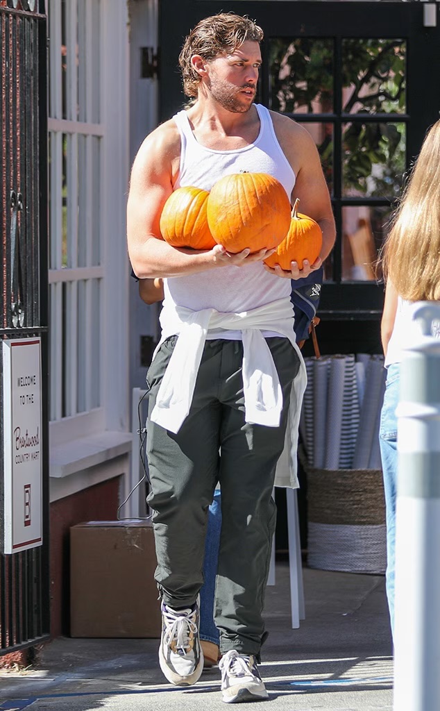 Good for him. What's he doing with those pumpkins?