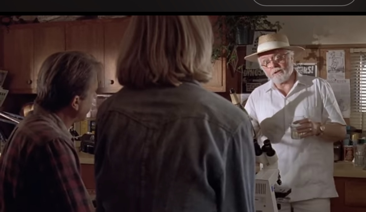 >HEY! We were saving that for the day a mysterious and secretive billionaire would arrive to take us on a fantastical trip to a wonderworld amusement park where dinosaurs were brought back to life through advanced cloning techniquesWhy did Grant say this?I actually think it's cute how Hammond looks like a little kid who just got caught with his hand in a cookie jar.