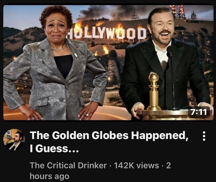 The internet has had time to come to a general consensus on the golden globesThat means it’s time for critical drinker to make a video telling us everything we want and expect to hear.