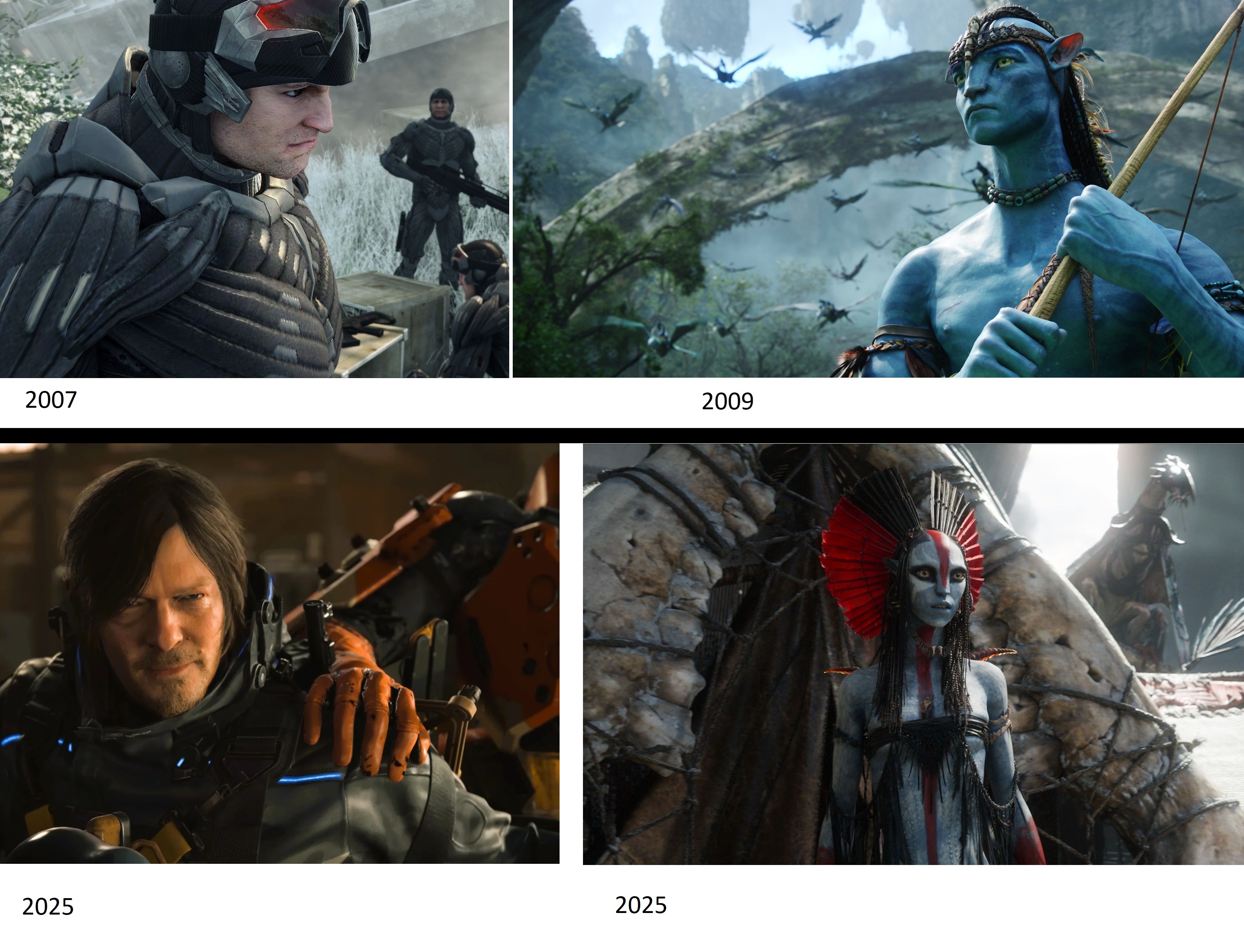>>217346601I'm not pessimistic like you are but I do wonder if it isn't that other cinematics have caught up so the difference is not as stark. Crysis was the best you could hope for, I was originally using an Asscreed 2 from 2009 clip that is AWFUL. But that's how most people encountered video games - asscreed, gta. On a scale of life-like Avatar 1 was let's say 90-100 (depending on your view) while video games couldn't even breach 50%.Now compare video games and avatar now. Avatar is still better by far obviously, I'd say closer to 100% than ever. But video games are now less sub 50% on the way and more like 60-75% or something. There isn't as much as a wtf-wow-novelty as before where compare 2009 https://www.youtube.com/watch?v=5PSNL1qE6VY2008 https://www.youtube.com/watch?v=w0xP5x5DVeUOr switch the years if I got the GTA link wrongSo someone who is just brainlessly interested in nothing but spectacle wouldn't feel the same pull to avatar 3 as they did 1. I don't agree with the pessimism though - I just do get that it doesn't have the same tech wow as it did before.