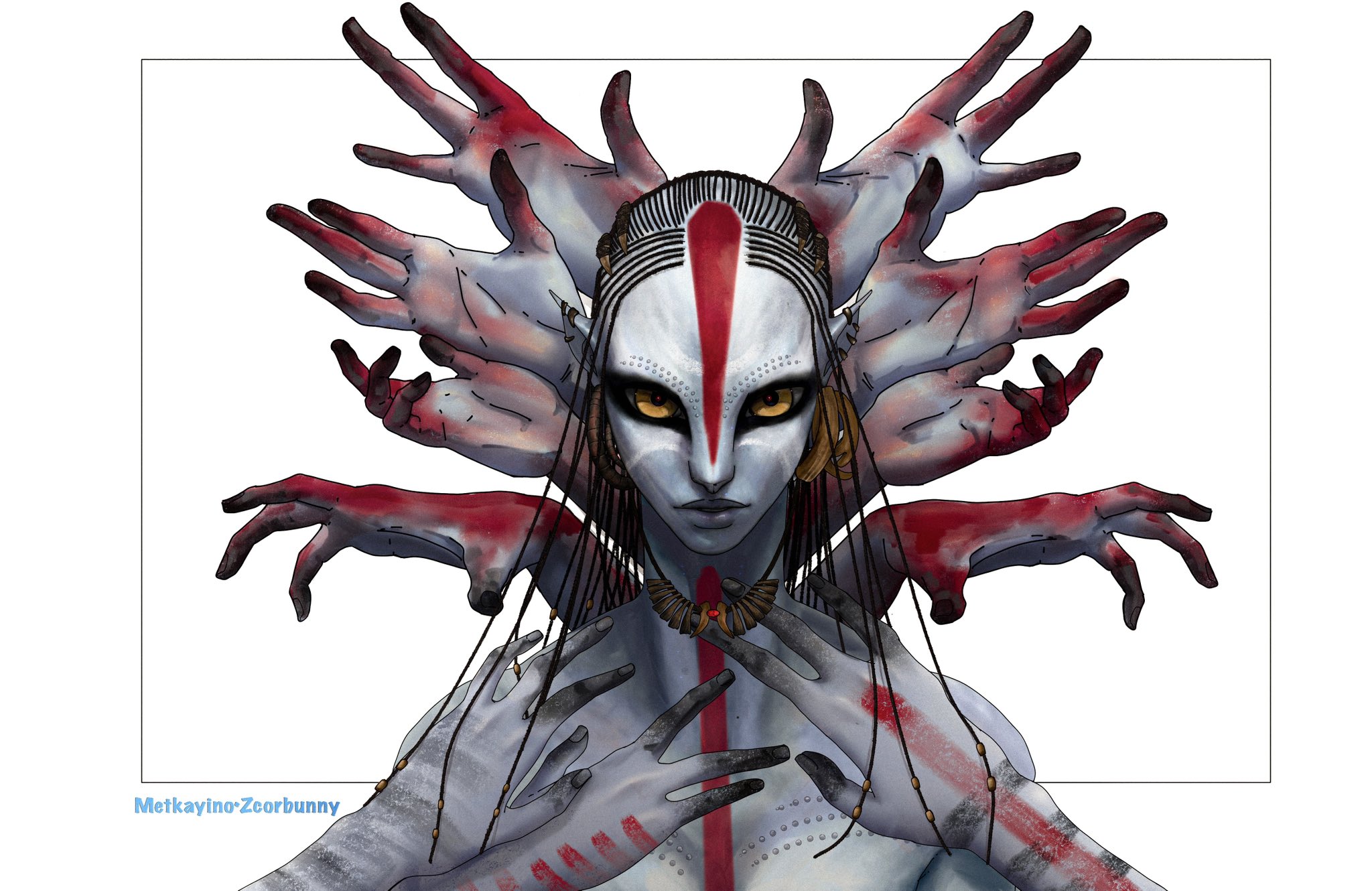 I still find it weird how this series treats breasts, like all the Na'vi women are technically topless but they usually have necklaces or something else conveniently placed to hide the nipples, but then in many other shots they are plainly visible