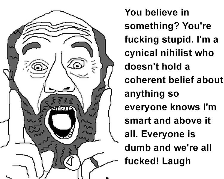 >>217355658>implying babykillers give two goddamn fucks about any other adults besides themselvesGeorge Carlin loved talking about how much he hated everyone so he was being kind of a hypocrite when he said shit lile this. He had a special titled something like, "I Really Like it When a lot of People Die". But then 9/11 happened and they changed the name.