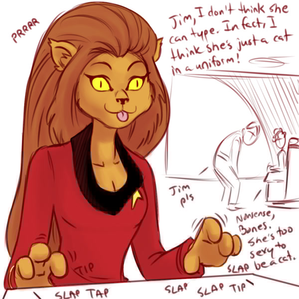 They should make a Star Trek video game where you romance a Caitian or Ferasan.